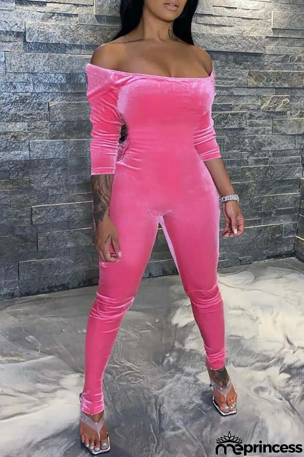 Product Name Pink Sexy Casual Solid Backless Off the Shoulder Jumpsuits