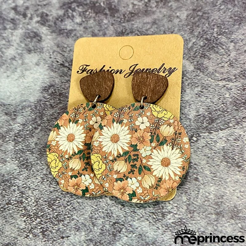 Women Fashion Retro Bohemian Flower Stitching Wooden Earrings